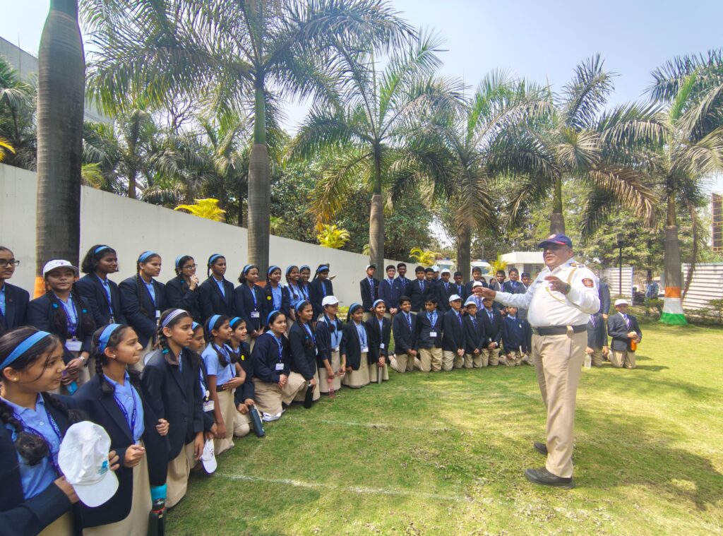पोलीस आयुक्त श्री संदिप कर्णिक यांनी विद्यार्थ्यांशी संवाद साधून पोलीस दलाचे कार्य, कर्तव्यनिष्ठा व सामाजिक जबाबदारी याबाबत मार्गदर्शन केले. विद्यार्थ्यांनीही उत्साहाने प्रश्न विचारून पोलीस प्रशासनाची कार्यप्रणाली जाणून घेतली.